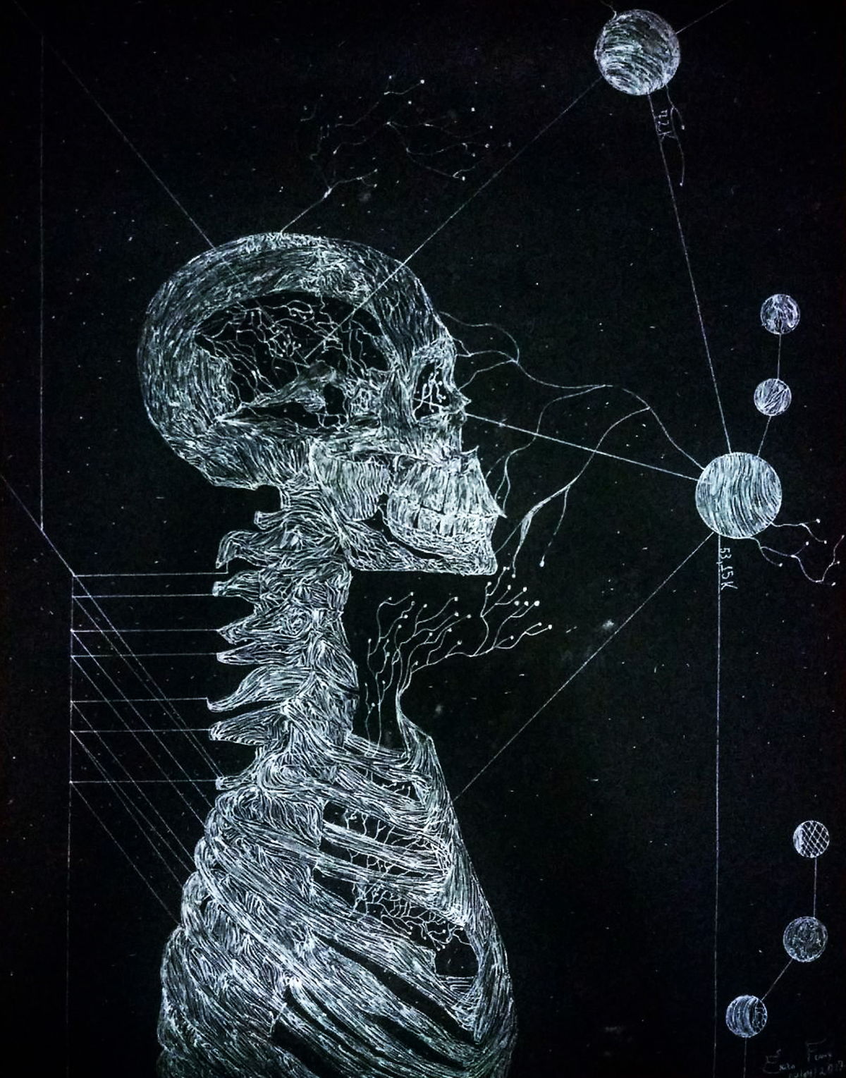 Tudo o que consumimos artisticamente nos transforma mesmo que de forma sutil. Esse repertório de experiências sensoriais nos ajudam a aprimorar o nosso olhar e a nossa sensibilidade. Não é por menos que Fryer insere nos palcos a performance, afinal com referências como David Bowie, Marilyn Manson, Queen Nine Inch Nails e Ney Matogrosso o resultado não poderia ser outro. Além disso, ele conta que se alimentou com os filmes de Tim Button, David Lynch e Kubrick. Apaixonou-se pela poesia de Alvares de Azevedo e Edgar Allan Poe, depois começou a enveredar para o mundo da poesia escrevendo os seus próprios poemas e suas composições. Fryer resgata algumas das referências da obra de Arthur C. Clarke e Phillip K. Dick de forma simbólica nas suas pinturas.