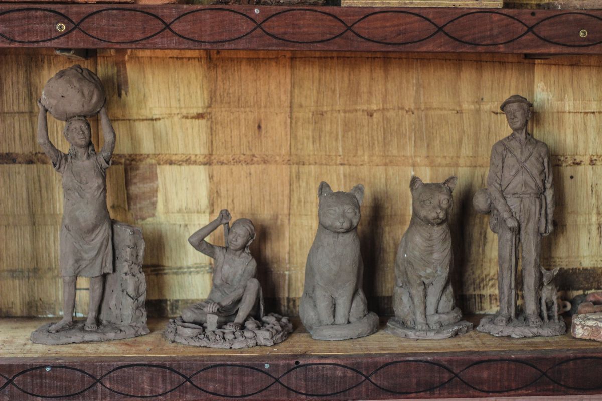Moldar é dar forma e contorno desejados a uma determinada matéria-prima ou a uma mistura de materiais. É um trabalho delicado de criação e observação que muito agrada ao artista plástico João Borges. “Eu gosto mesmo é de criar, pois a partir do momento que eu crio, também me realizo naquela criação”, afirma o artista. E se engana quem pensa que João tem apego aos seus trabalhos, muito pelo contrário. Para o artista plástico, a venda da obra e a chegada ao seu destino são o final de um processo que se iniciou no momento em que João parou para imaginar em que iria se transformar o monte de argila que estava a sua frente. Para alguns trabalhos João desenha previamente, e constrói a partir daí. Mas na maioria dos casos lida diretamente com o barro. Estabelece-se uma relação de reciprocidade entre o artista e seu material de trabalho. João diz que as suas inspirações surgem a partir desse contato com o íntimo com o barro.