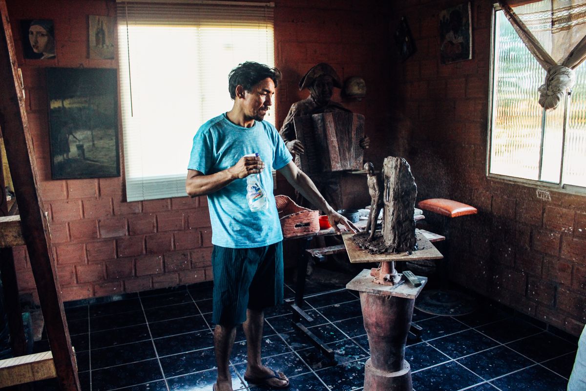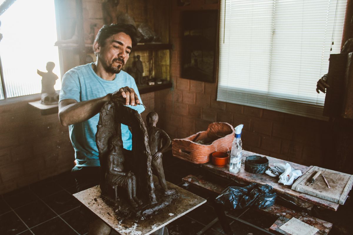 No ritmo acelerado dos dias atuais, em qual momento paramos para olhar para dentro de nós mesmo, e exercitar a percepção interna e externa? No vai e vem frenético, as miudezas somem diante de questões tidas como prioritárias. Cabe ao cronista, o atento contador de histórias, relatar com riqueza de detalhes, e com uma pitada de suas impressões, o que ignoramos completamente. Você pode estar se perguntando o que é que isso tudo tem a ver com o trabalho do artista plástico João Borges, pois bem, o artista assume o papel de um escritor a partir do momento em que transforma o barro em elemento provocador de sensações humanas. João retrata em suas esculturas cenas do homem nordestino, esse povo de características culturais e comportamentais tão ricas e peculiares. Esses personagens, muitas vezes passam despercebidos, e é exatamente por esse motivo que João gosta de trabalhar em torno deles. “O foco do meu trabalho é para as situações imperceptíveis do cotidiano”, diz o artista. Justamente para fazer com que as pessoas que veem os seus trabalhos valorizem esses personagens. “Acho que minha arte registra vozes, sorrisos, situações”, comenta João.