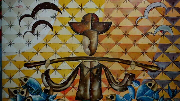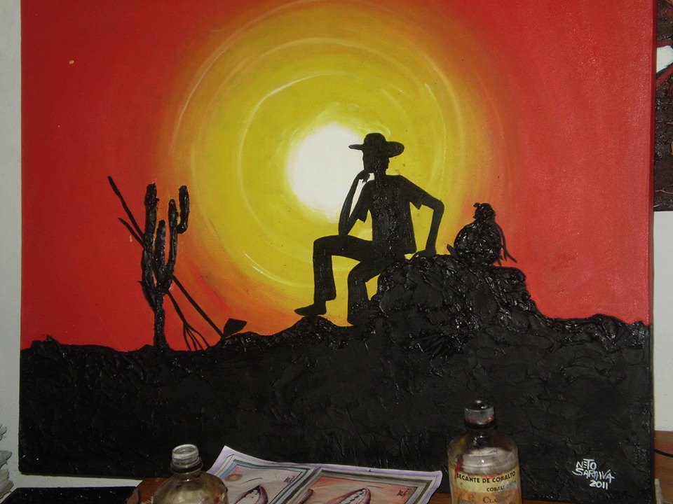 O sol. O sertanejo. A natureza. A cultura nordestina. São elementos bastante presentes na arte de Francineto Saraiva, como você pode observar nesta tela. Em outras obras, também pode-se observar a música e a culinária do Nordeste, entre outros elementos, em um cenário de muita cor, luz e vida. Sobre seu maior sonho, Francineto nos conta que é continuar fazendo o que mais gosta: pintar. E chegar aos 90 anos bem ativo nesta arte.