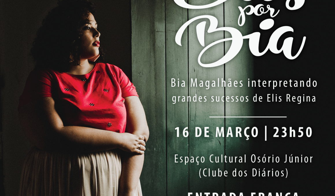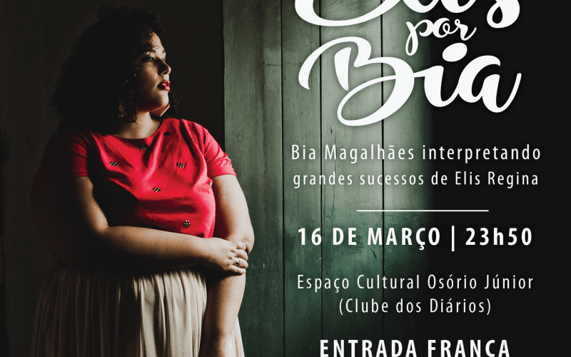 Bia Magalhães, vocalista da banda Bia e os Becks, interpretará grandes sucessos da cantora Elis Regina na apresentação “Elis por Bia”. O evento será realizado no dia 16 de março, às 23H50, no Clube dos Diários de Teresina. Será uma produção do Geleia Total, com direção musical de Lucas Coimbra.