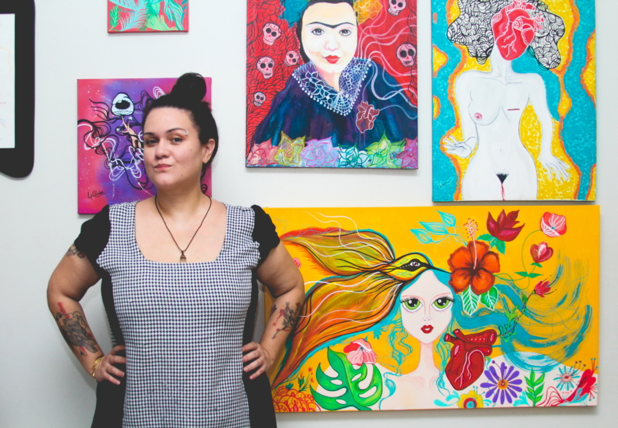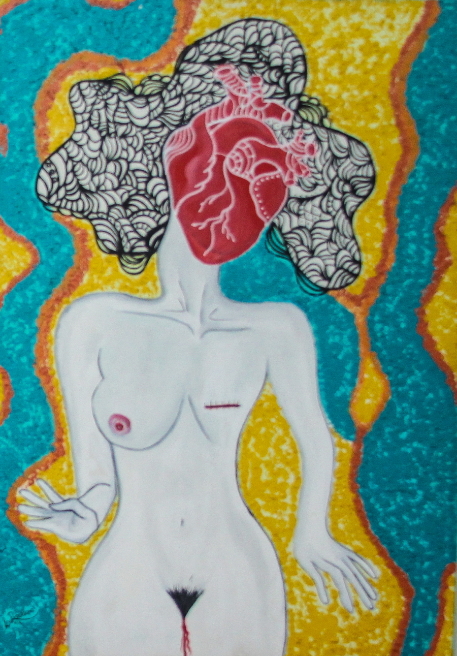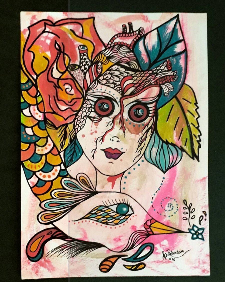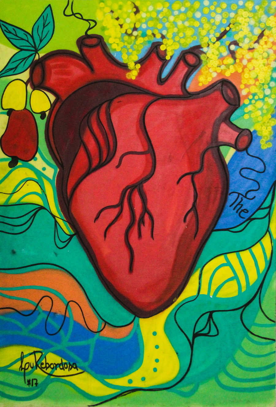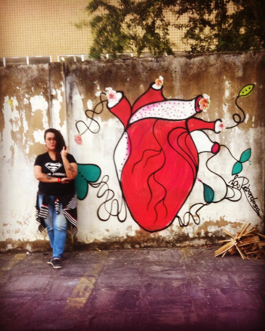 “As artes visuais é mais do que uma expressão minha, uma expressão do mundo, de como eu vejo o mundo, do que me sensibiliza, do que me toca. É um ato político mesmo”, diz LuRebordosa. Ela é natural de Teresina, formada em Ciências Sociais, Artes Visuais, Luciana Leite, mais conhecida como LuRebordosa é professora e artista visual. É idealizadora do coletivo Ocuparte e já participou de exposições como “Rizoma 08” (2017), “Pulse” (2017), entre outras. LuRebordosa faz da arte o seu instrumento de fala, de revolução, de expressão, expondo questões urgentes, que necessitam de reflexão e questionamento. A artista já homenageou as mulheres, Frida Khalo e além dos seus famosos corações que pulsam vitalidade no emaranhado de cores. LuRebordosa é uma “fazedora de coisas” que nunca se cansa de pesquisar e se expressar.