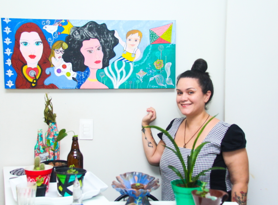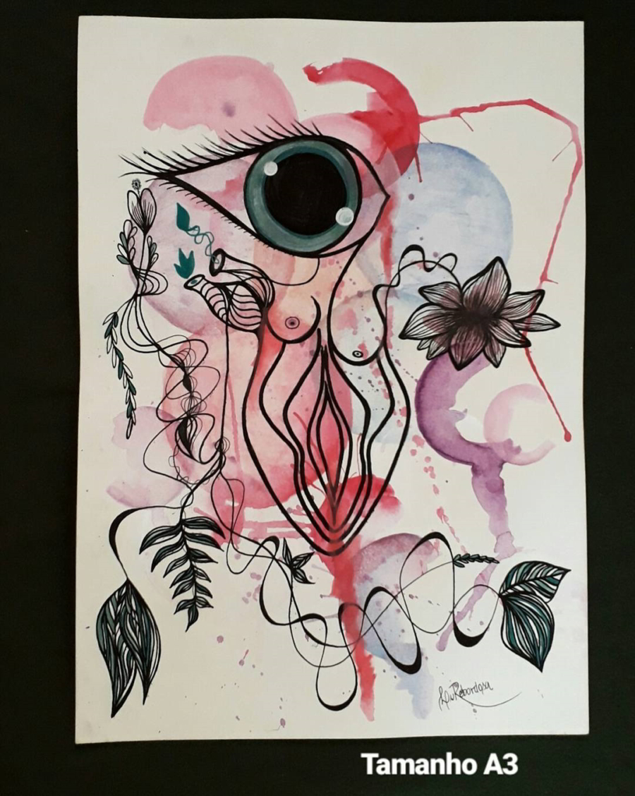 “Eu não conhecia quase nada. Eu pintava em papel ou com o que eu tivesse, tinta guache, caneta hidrocror, coleção, giz de cera. E quando eu entrei no curso eu fui saber a diferença de uma tinta oléo, de uma aquarela, qual o pincel para casa coisa, qual é a base e eu comecei a desenhar muito em tela”, diz LuRebordosa. Apesar dos obstáculos enfrentados na graduação, a artista conta que o conhecimento foi muito importante e ajudou a conhecer a diversidade de materiais disponíveis, além das diversas disciplinas e cursos que ajudaram a entender como trabalhar com cerâmica, animação, fotografia e design. LuRebordosa foi professora de artes, filosofia e sociologia, tudo isso antes mesmo de concluir a graduação. E mesmo nesse período a artista nunca se afastou das artes, pelo contrário, ela conta que fazia bijouterias, pintava e estava sempre tentando se expressar artisticamente. Mesmo depois de sofrer um acidente, deixando-a presa à cama temporariamente, LuRebordosa brinca comparando-se à artista Frida Khalo. Ela conta que começou a pintar profissionalmente depois que deixou de lecionar e desde então vem nos encantando com as suas telas.