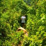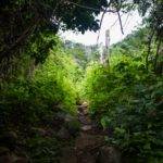 Quando saímos, pensamos ter nos perdido do caminho pois a trilha tinha mudado. As chuvas recentes mudaram um pouco o que percorremos da última vez. A trilha tinha um pouco de lama e o riozinho parecia quer queria nos acompanhar. Voltamos e vimos que era por ali mesmo. Nesse momento um calor muito grande se apossou do lugar. A mata tava muito alta, também pelas chuvas, e ai por isso o calor fica retido na umidade das plantas (creio eu). Foi difícil, mas pouco depois uma baita nuvem melhorou a sensação (mas nos deixou preocupados).
