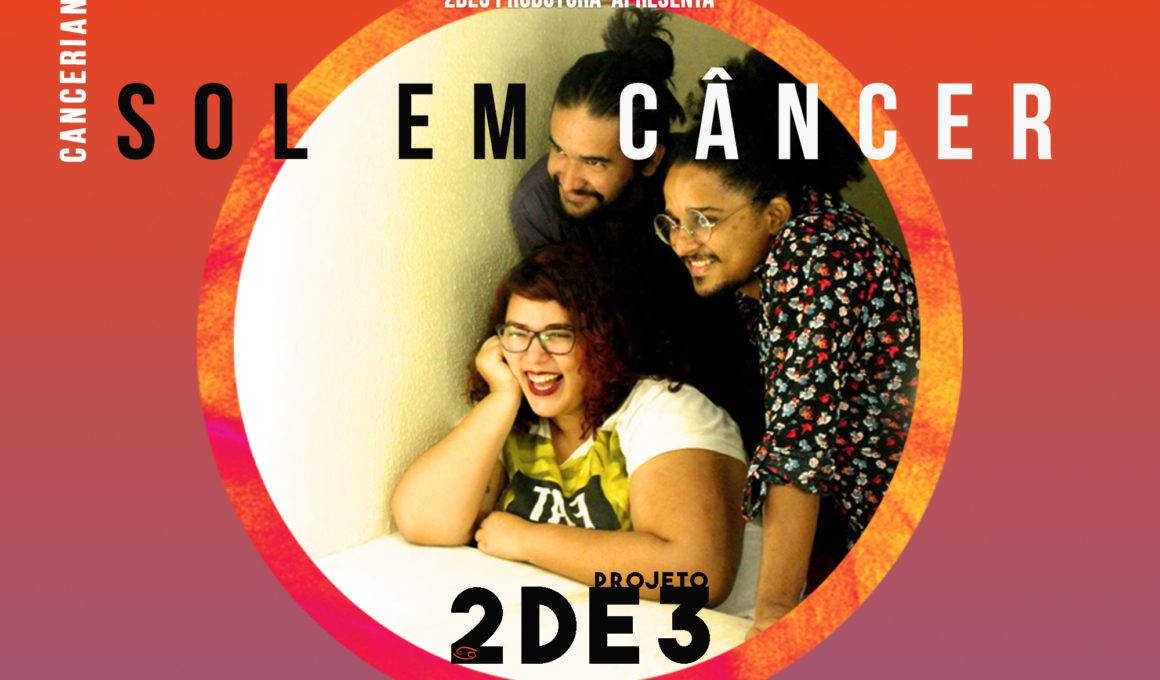 O Projeto 2de3, formado pelo trio de artistas Bia Magalhães, Lucas Coimbra e João Paulo Araújo, se reunirá neste sábado (14) em um show intitulado ‘Sol em Câncer’, às 20 horas, no Palácio da Música. O projeto paralelo de Bia Magalhães, Lucas Coimbra (que fazem parte da banda Bia e Os Becks) e de João Paulo Araújo (baixista e produtor musical), foi criado em 2016 no intuito de mostrar composições que nunca se encaixariam nos outros projetos do trio. As canções falam sobre amor, relacionamentos e sobre sentimentos relacionados ao ‘eu’: “São músicas que falam muito sobre nós mesmo, do nosso universo, dessa gente que acredita em signo, desse povo canceriano.”, conta João Paulo Araújo. Com pouco tempo de estrada, o projeto já abriu shows para músicos como Gustavo Amaral, Ana Larousse e Leo Fressato. Para o concerto ‘Sol em Câncer’, o trio traz um show intimista, onde os três músicos tocam diversos instrumentos, fazendo suas canções autorais e versões de músicas já conhecidas pelo público.