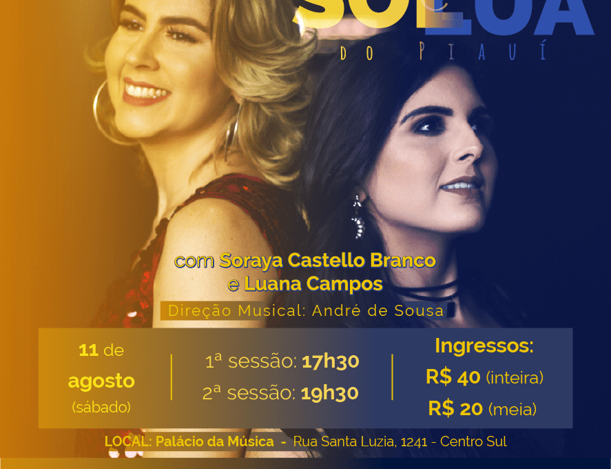 O show Sol e Lua do Piauí, idealizado e produzido pela Geleia Total, vem com uma proposta de unir duas grandes intérpretes do Piauí, Soraya Castello Branco (Sol) e Luana Campos (Lua), com estilos musicais bem diferentes, para interpretarem juntas um repertório 100% autoral piauiense. Ritmos misturados, uma Geleia Total de estilos pensados especialmente para mostrar o quão diverso somos, nós piauienses. O encontro das duas artistas representa a pluralismo de um povo que já nasceu diverso. Sol e Lua do Piauí tem um pouco de tudo, vai da veia do rock da Luana Campos ao ecletismo tropical da Soraya Castello Branco. O show conta com a direção musical do grande guitarrista, compositor e arranjador André de Sousa.