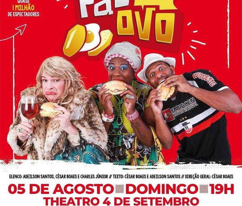 Este domingo é pra rir, com a comédia “Pão Com Ovo”, da Santa Ignorância Cia de Artes de São Luís-MA. Será a partir das 19hrs, no Theatro 4 de Setembro.