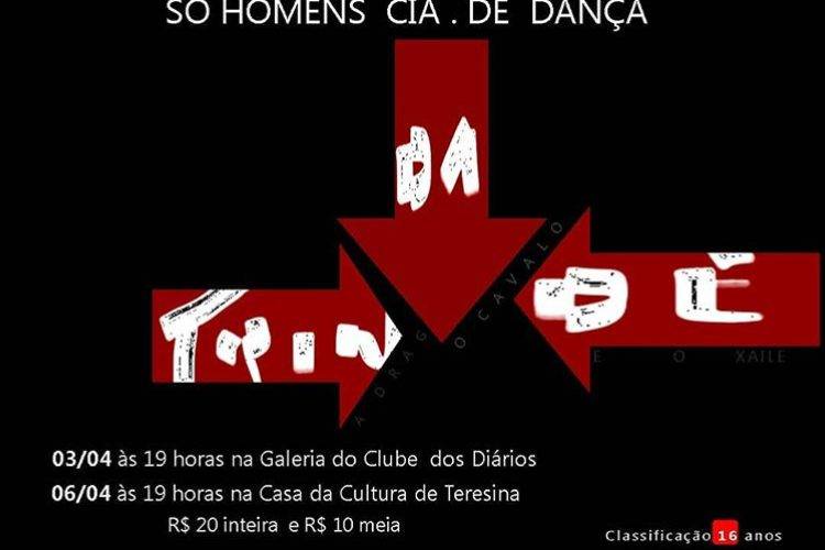 Só homens CIA de dança apresenta o espetáculo “Trindade”. Terá uma apresentação dia 03 de agosto na Galeria do clube dos diários, a partir das 19hrs e no dia 06 de agosto na Casa da Cultura no mesmo horário. Não fique de fora dessa!