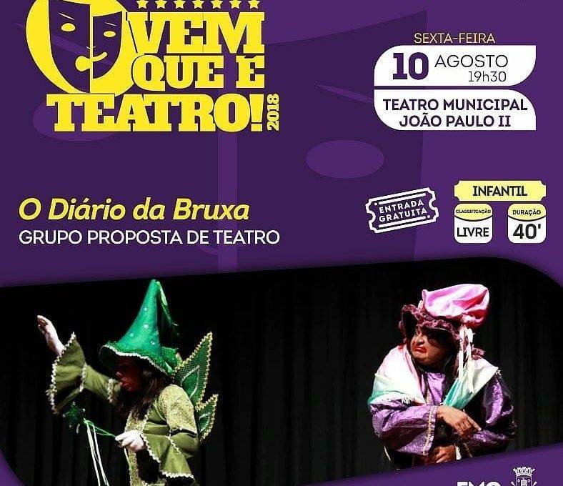O projeto VEM QUE É TEATRO de HOJE trás muita magia, encantamento e muitas gargalhadas com o espetáculo “O DIÁRIO DA BRUXA”, no Teatro João Paulo II.