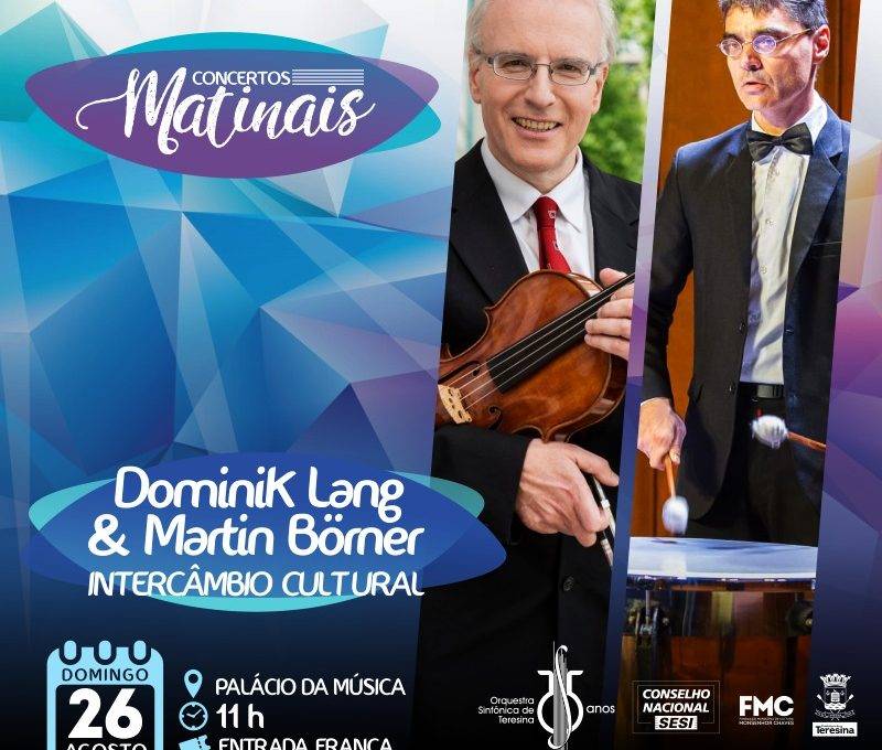 Domingo (26), no palácio da música, teremos o concerto dos alemães Dominik Lang, Martin Borner e convidados. A apresentação será por conta do projeto Intercâmbio Cultural com a Orquestra Sinfônica de Teresina. Começa às 11h e a entrada é franca!