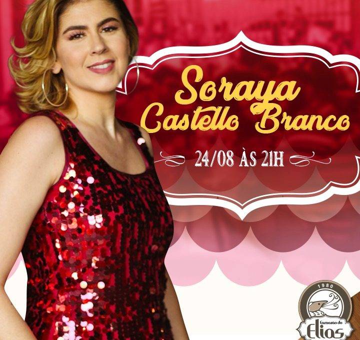 Nesta sexta, 24 de agosto no Camarão do Elias a partir das 21Hrs, tem o melhor da Soraya Castello Branco para você curtir.