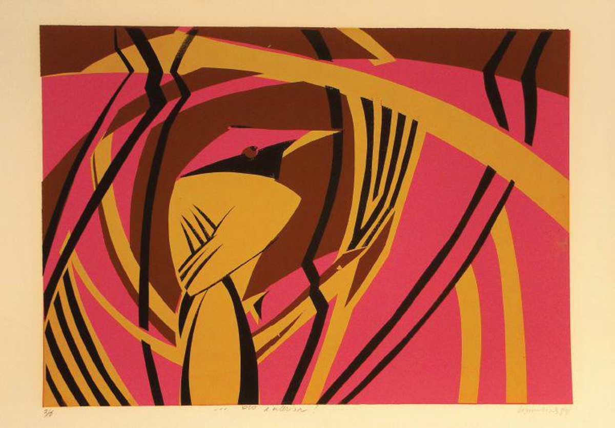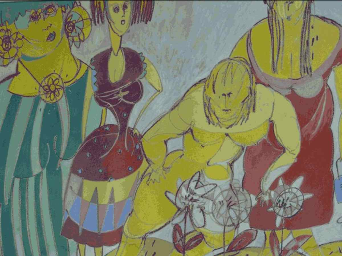 A artista Liz Medeiros produziu trabalhos com temáticas variadas, usando diversos materiais que vão do carvão, lápis, óleo e nanquim – técnicas usadas nos trabalhos iniciais nas quais predomina as gravuras ricas em detalhes. A obra “Pássaros” é um exemplo dessa fase da artista. E essas características foram transmitidas por Thereza Miranda, além dos conhecimentos de serigrafia adquiridos com o professor Dionísio del Santo.