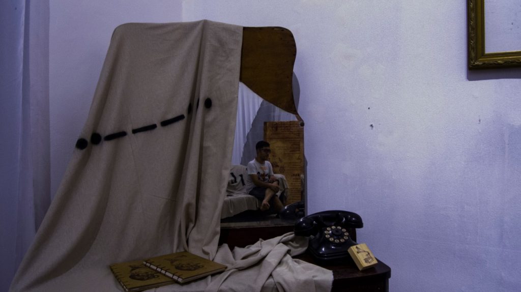 “A exposição é uma experiência imersiva na minha obra. O primeiro ambiente é uma casinha com versos do meu primeiro livro “Uma pedra em cada por enquanto” (2013), o segundo ambiente é uma imersão no “Dolores (e os remédios para dormir)” (2016), o terceiro ambiente é uma imersão no cenário do “Móveis Empoeirados no Peito” e o quarto ambiente é uma imersão no Escuto Histórias e transformo em poemas.” Ithalo Furtado