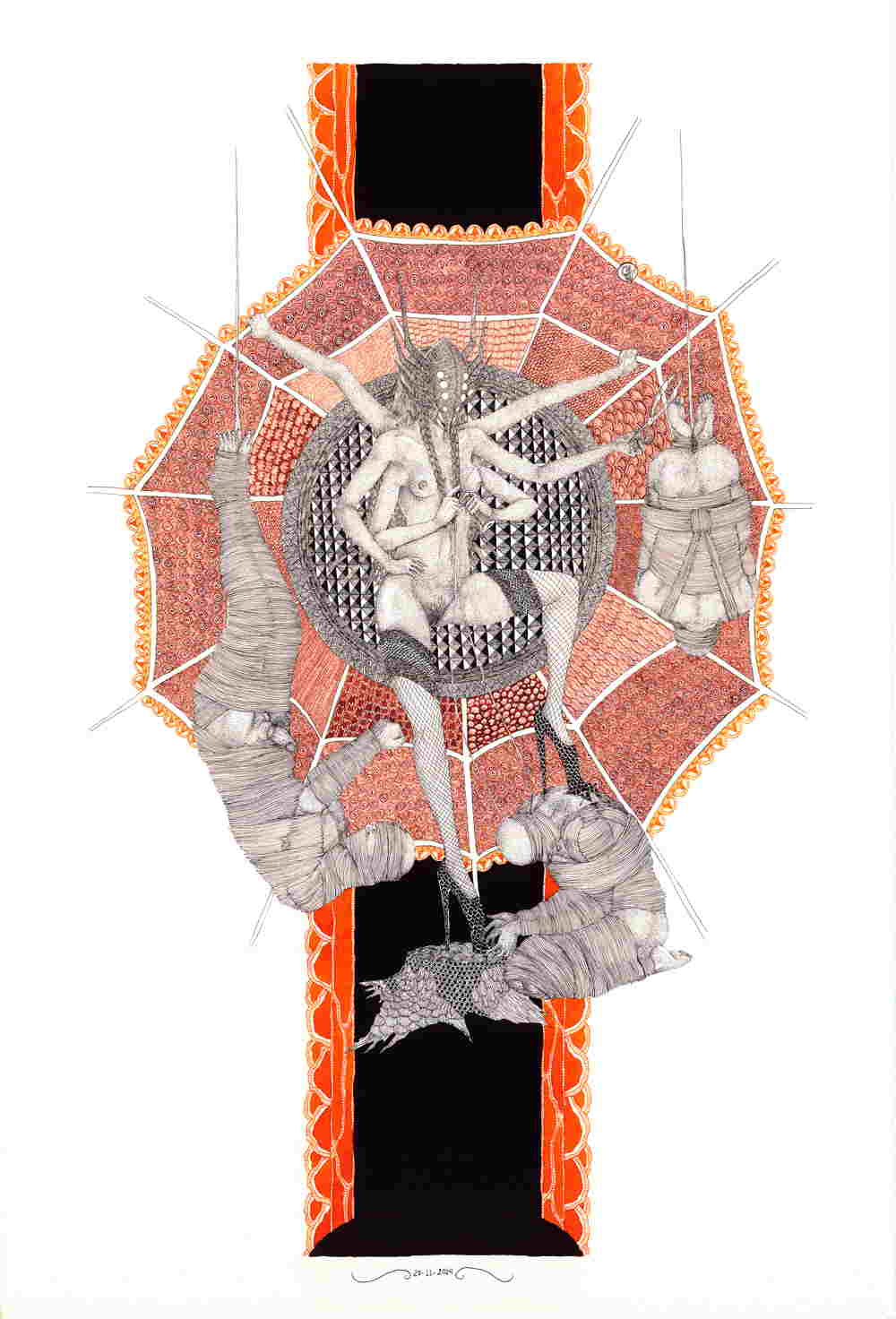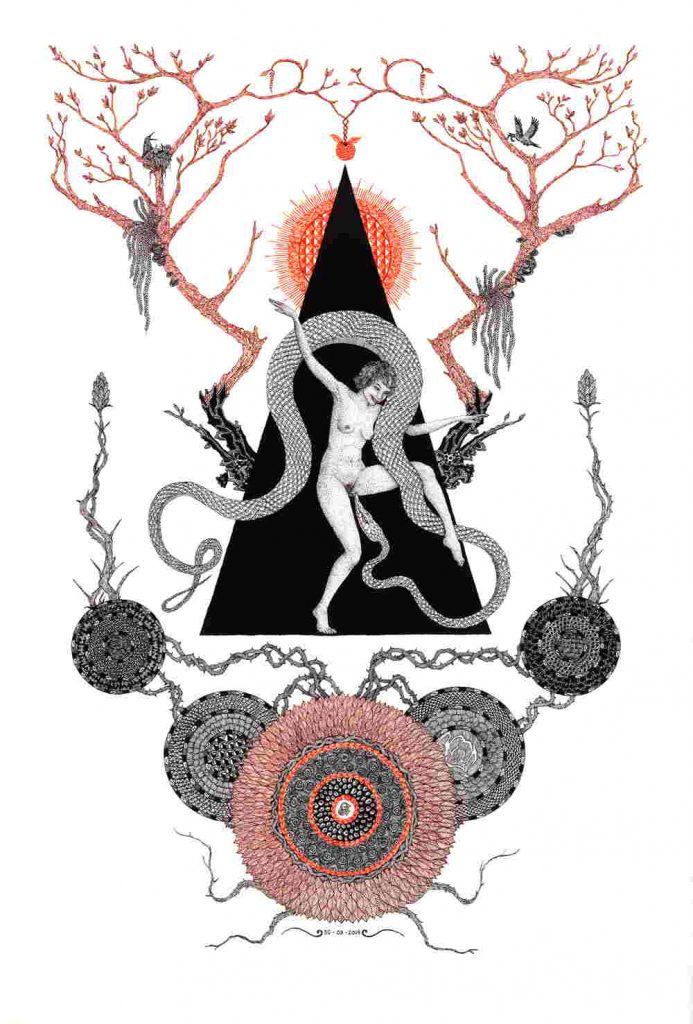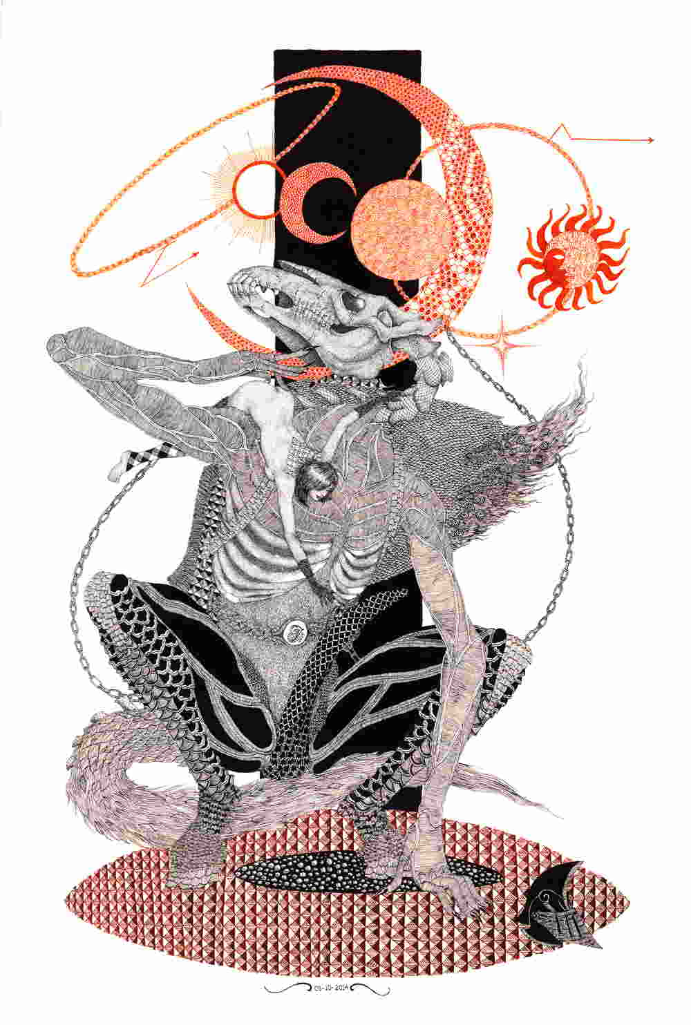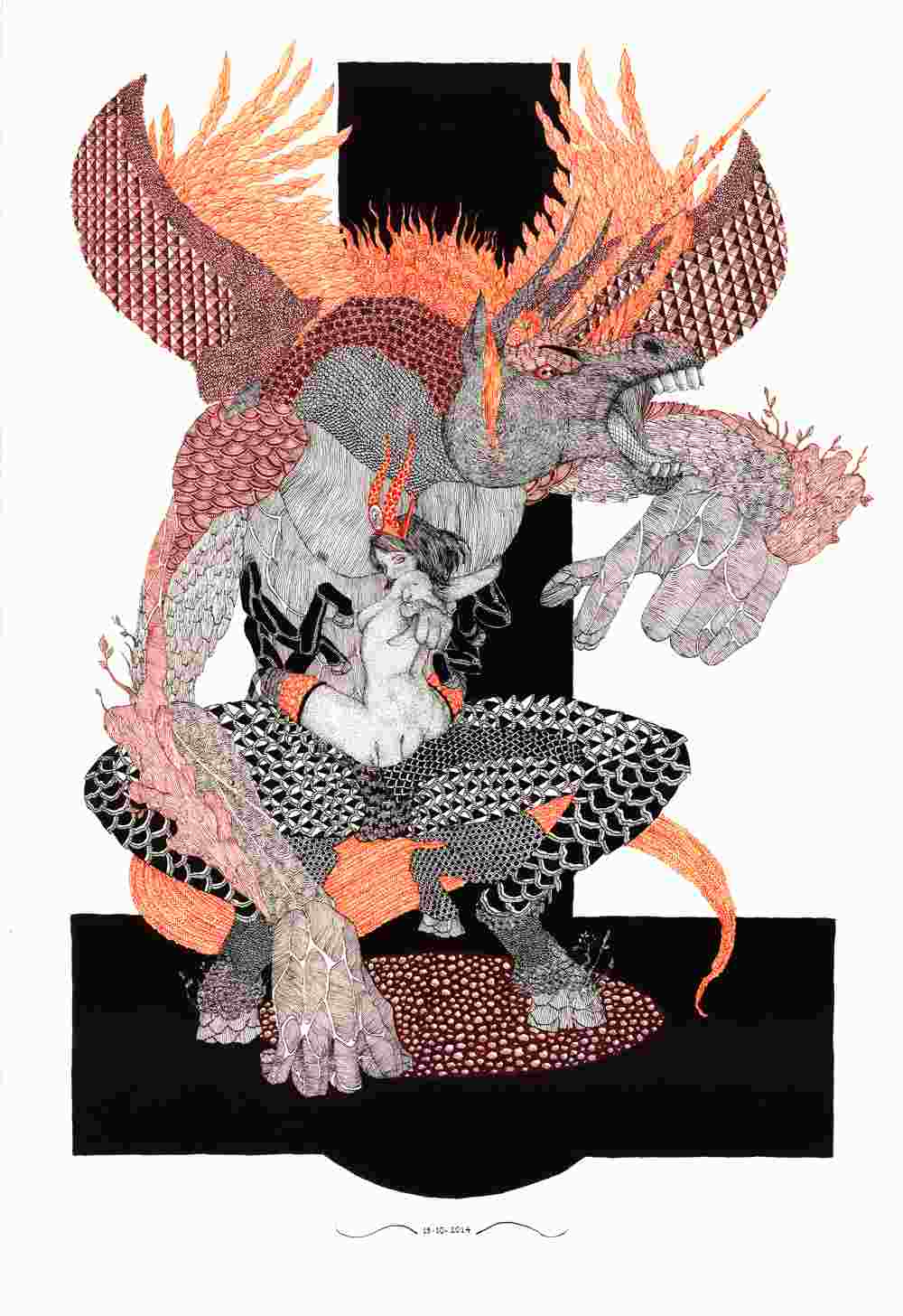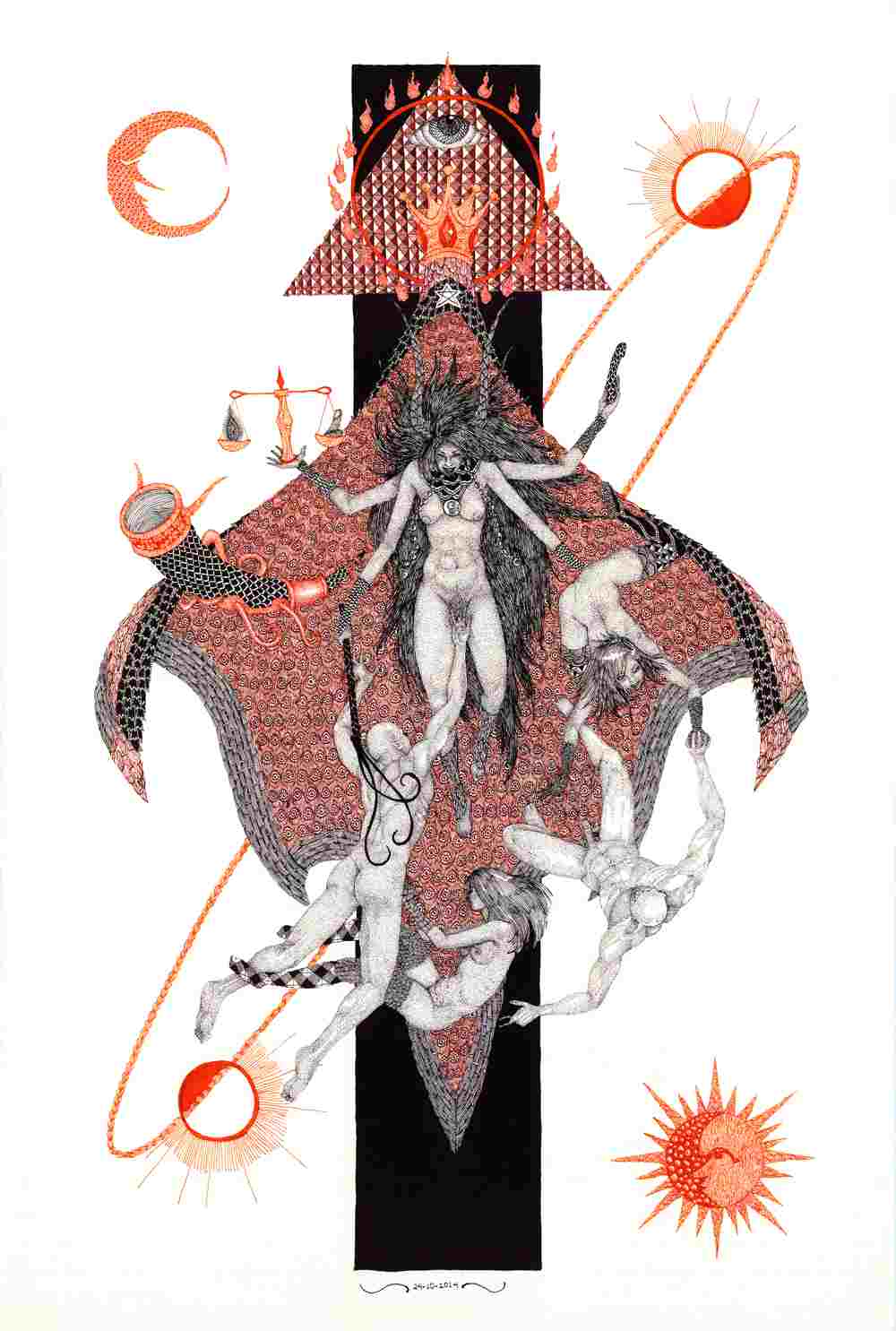 Na série EROTIKKA ilustro o paradoxo entre o sagrado e o profano, o mito e as ânsias, a sutileza e um tema que choca as pessoas, que levanta questões sobre o conceito do próprio corpo e sexualidade em contraponto a julgamentos do que é moral ou imoral acerca de um dos instintos mais naturas do ser humano, o prazer sexual.