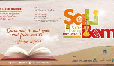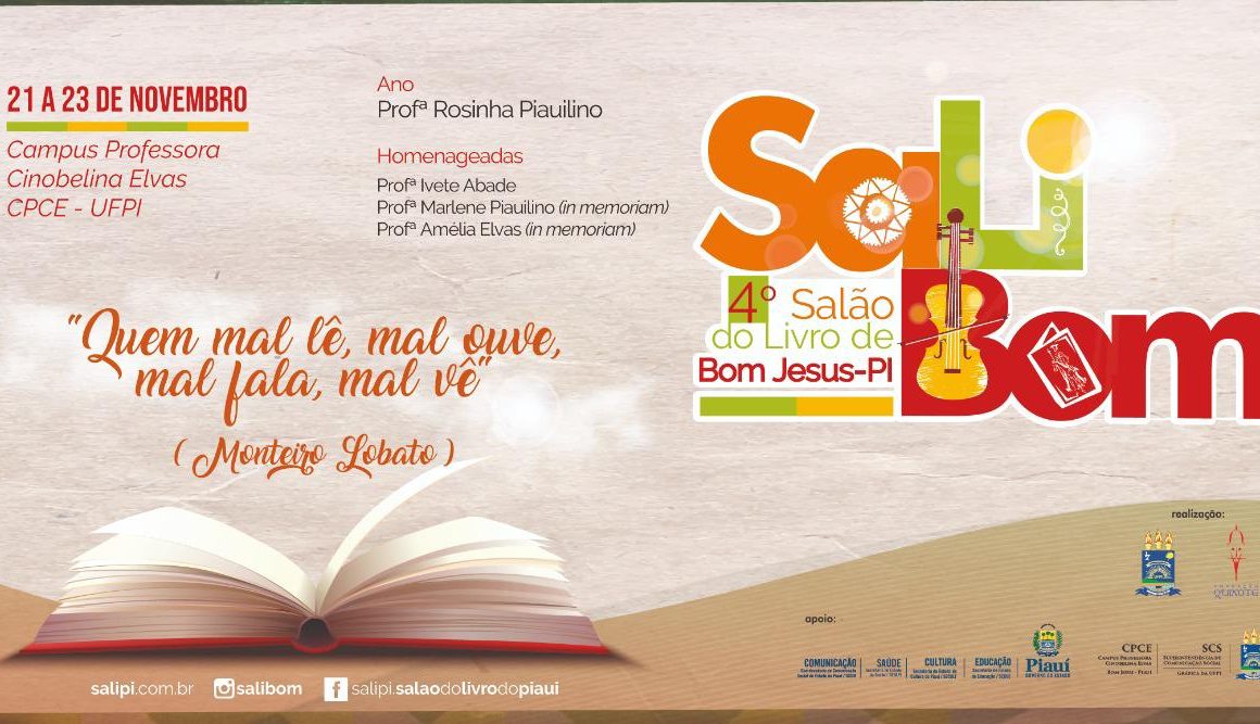 O SALIBOM (Salão do Livro de Bom Jesus) é a feira de livros de Bom Jesus e já está na sua 4ª edição (Ano Profª Rosinha Piauilino), o evento inicia hoje (dia 21/11) e vai até sábado (dia 23/11). O Salão nesta edição homenageia as professoras Ivete Abade, Marlene Piauilino (in memoriam) e Amélia Elvas (in memoriam). O Salibom chega com uma programação diversificada englobando uma feira de livros, bate-papo literário, palestras, diversas apresentações artísticas e culturais. A realização do evento é da Fundação Quixote e a Universidade Federal do Piauí em parceria com o Governo do Estado e Secretaria de Estado da Cultura (Secult).