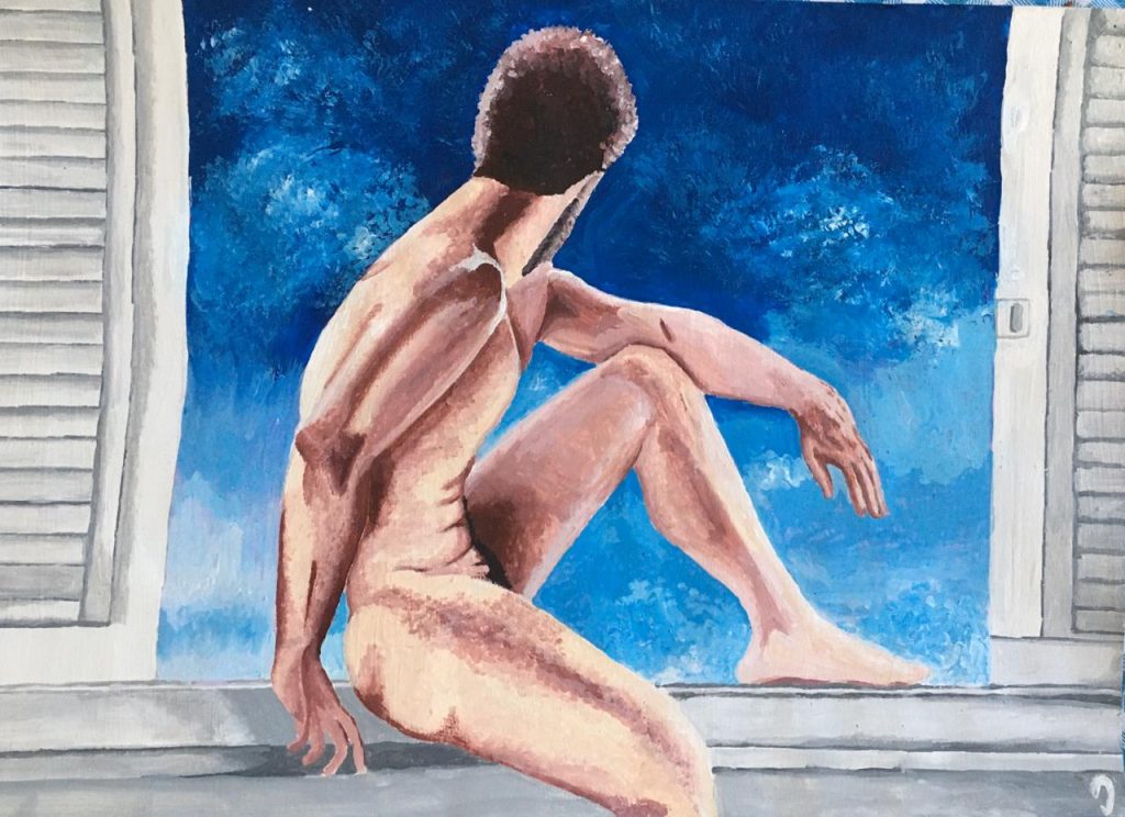 Uma característica muito marcante na exposição do artista Alisson Carvalho, A Poética do Corpo No Espaço, são os corpos masculinos apresentados nas telas. Corpos esculpidos em horas e horas em academias que buscam um ideal de uma perfeição quase grega. Analisando de uma forma mais profunda, me vem um questionamento: afinal, o quão real é um corpo colocado numa tela e o quão real é um corpo esculpido a duras penas nas academias?