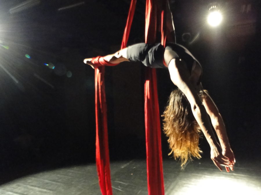 “O quintal da minha casa era o rio Parnaíba e a gente subia no pé de manga e saltava para dentro da água. E eu considero essas brincadeiras a minha iniciação no circo. Então, eu descobri que tinha uma vontade muito grande de trabalhar com o corpo.” Ainda na infância, Sonária mudou para uma cidade maranhense localizada ao lado de Floriano, ela conta que ao lado da casa dela existia um campo de futebol que era o lugar onde os circos se hospedavam. Então, ela cresceu com essa proximidade e intimidade com o ambiente circense e com todo aquele universo. Ela e os colegas acompanhavam os treinos e ensaios e conversavam com os artistas. Além disso, ela aprendeu sobre espetáculos sendo espectadora dos circos. Sonária Vasconcelos relembra como a criançada tentava aplicar tudo que tinha aprendido depois que os circos partiam para outras cidades. “A gente vivia nesse campo treinando acrobacias. Chegávamos da escola e íamos treinar, fazer essas vivências, essas experiências. Eu devia ter sete ou oito anos”, diz Sonária.
