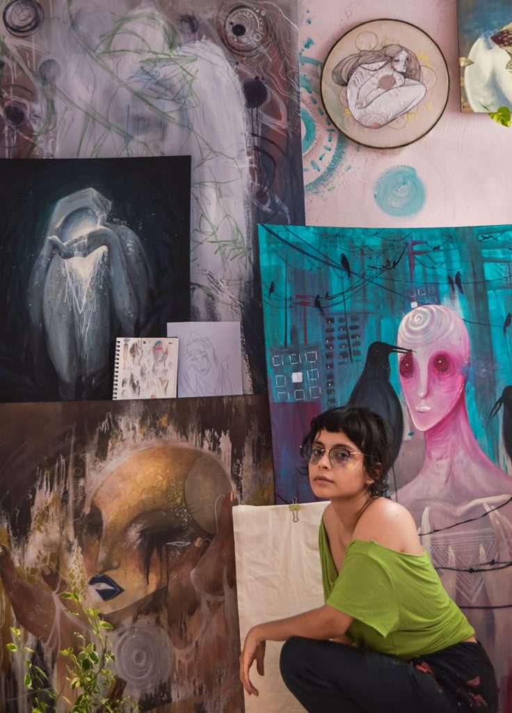 Emmanuelle Alencar nasceu em Teresina-PI, no mês do Carnaval. Regida pela mistura de cores e por uma paixão incurável pelas cores, a artista visual se declara uma afeiçoada pela expressão artística visual desde a infância. É graduanda de Arquitetura e Urbanismo, pela Universidade Federal do Piauí, e possui interesse na área de paisagismo, urbanismo e patrimônio, relacionando-os a estudos sobre simbologia, linguagem e condição humana em sua produção. A artista já participou das comissões organizadoras do evento de extensão “História da Arquitetura Ilustrada: Exposição dos Alunos do Curso de Arquitetura e Urbanismo na Área de Teoria e História da Arquitetura” (2018) e da Oficina de Arte para Crianças “Pintando o Sete” na Montmartre Arte e Galeria (2018). Participou também das exposições “Quando Tudo Era Ausência” (no Café Alquimia), Exposição “flor(e)ser” (no Salve Rainha das Flores), “História da Arquitetura Ilustrada: Exposição dos Alunos do Curso de Arquitetura e Urbanismo na Área de Teoria e História da Arquitetura” (no Teresina Shopping), Orto (na Galeria Montmartre), Exposição de Arte Alternativa (na Casa da Cultura), “NarrAtivas” (na Galeria Louvre Tattoo), Piauí Surreal Group (na Galeria do Mercado Velho), entre outras.