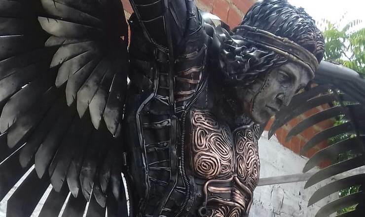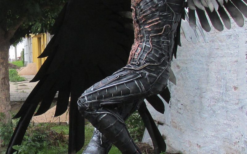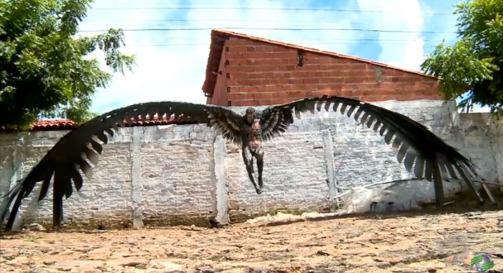 Cunversa! Agora a escultura, que tem três metros de altura por dez metros de envergadura de asas, ficará lá no Museu da Imagem e do Som de Teresina (MIS) com previsão para ser inaugurado no final deste ano. O fuxico para o nome veio do poema de Torquato Neto “Let’s Play That”, onde o poeta fala sobre um “anjo louco, torto” e com “asas de avião” veio lhe visitar.