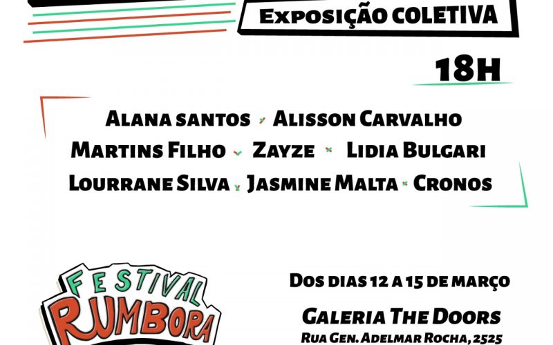 A Exposição coletiva “Vivências” é uma mostra das experiências de pesquisa de artistas visuais piauienses que dialogam com a cidade e conta com a participação de Alana Santos, Lourrane Silva, Jasmine Malta, Martins Filho, Lidia Bulgari, Zayze, Cronos e Alisson Carvalho. A mostra de trabalhos ficará disponível durante todos os dias do Festival Rumbora que acontecerá do dia 12 ao dia 15 de março. A entrada custará 15 reais e contará com shows musicais e lançamentos de livros.
