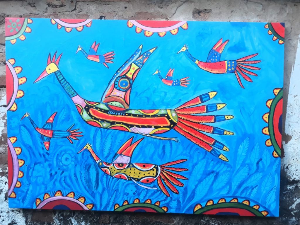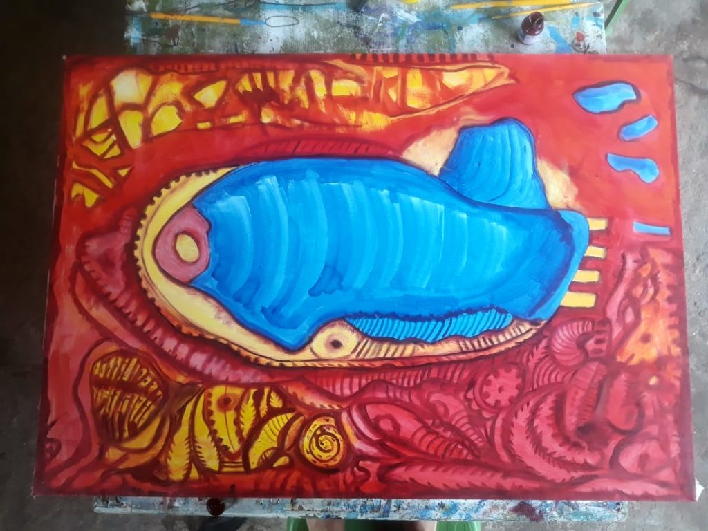 “A pintura representa maravilha das galáxias que me deixa levitar de prazer.” Daniel Mendes