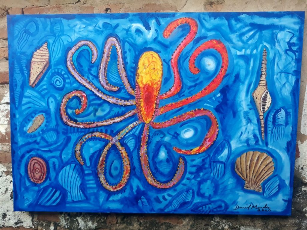 “A pintura representa maravilha das galáxias que me deixa levitar de prazer.” Com essa declaração Daniel Mendes demonstra a imensidão do poder da pintura que é capaz de comunicar independente de linguagem, rompendo várias fronteiras impostas pela variação linguística. Além disso, o artista como escultor permite uma interação sensorial com a sua obra, ampliando as formas de interação com a sua arte. A sua arte flutua por temas diferentes, mas que mantém a sua identidade artística que é bem marcante. Nesse sentido, embora aborde muitos temas a sua inspiração tem como principal fonte nutritiva a natureza que proporciona espetáculos de cores e formas inspiradores para o artista. E como fonte interna Daniel procura estar sempre entusiasmado com os mínimos detalhes da vida, do cotidiano, dos dados que o universo disponibiliza para a sua observação. Para o pintor e escultor é preciso ter um olhar 180° e estar atento aos sinais que a natureza demonstra. O olhar experiente do artista é capaz de enxergar em uma madeira à deriva ou em uma rocha abandonada pelo tempo narrativas que serão lapidadas pelas suas mãos sensíveis. O universo pictórico de Daniel Mendes navega por um oceano de formas disformes, extraindo da ancestralidade não apenas ferramentas e técnicas para a criação, mas para a sua performance diante da arte.