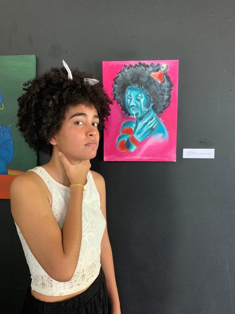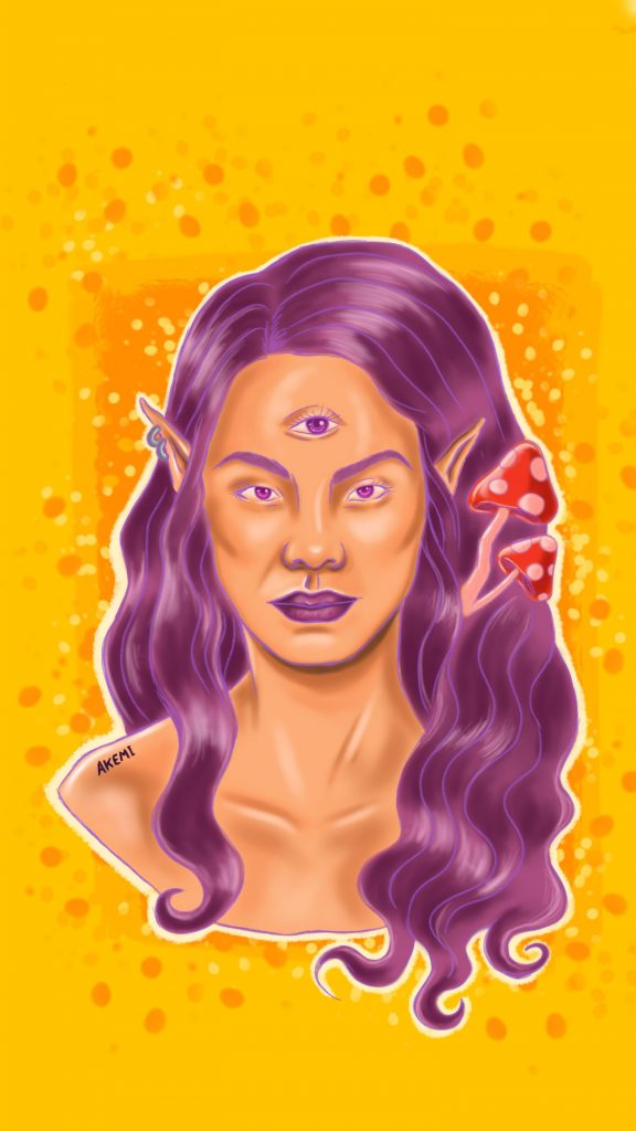 A artista visual Akemi Morais é natural de Inhuma-PI, mas radicada em Teresina. É graduanda em Artes Visuais, na Universidade Federal do Piauí (UFPI). Ela desenha desde a infância. Envolveu-se com a dança na oficina/projeto “Arte/educação/cidadania” ministrada pelas bailarinas Drika Monteiro e Luzia Amélia, mas sua atuação maior está nas artes visuais. Akemi já expôs nas mostras “Faces da (IN) Visibilidade” (2017), “GIRLY”, no Tomato Gastronomia (2017), “narrativas”, na Galeria Louvre Tattoo (2019), “Voragem” (@voragem_), na Casa da Cultura de Teresina (2019) e na “Exposição Virtual Júlio Romão”, no Instagram da Casa Barro @casabarro (2020). A artista tem um trabalho variado nas artes visuais, usando técnicas mistas, mas com uma identidade bem particular indo, inclusive, para o Afrofuturismo.
