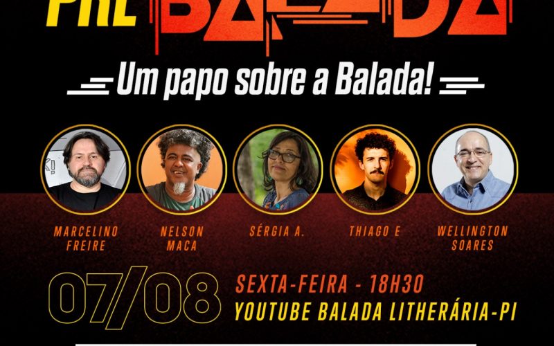 A Balada Litherária de Teresina acontece nos dias 24 e 25 de Agosto pelo canal do Balada Litherária – PI no Youtube.
