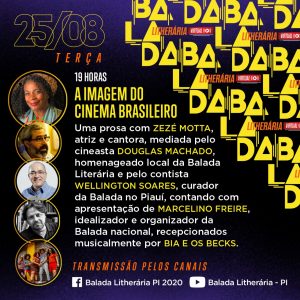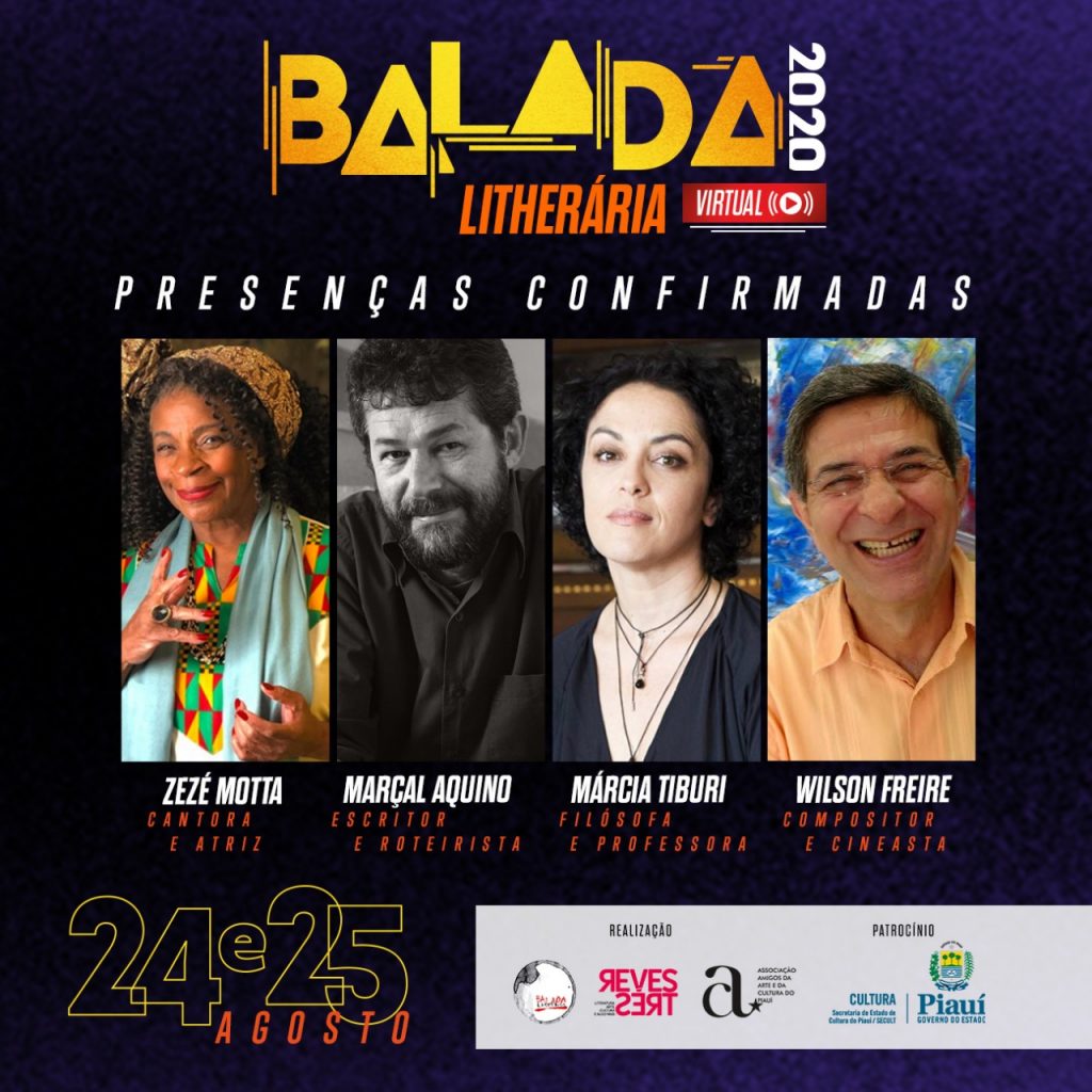 Uma prosa com ZEZÉ MOTTA, atriz e cantora, mediada pelo cineasta DOUGLAS MACHADO, homenageado local da Balada Literária e pelo contista WELLINGTON SOARES, curador da Balada no Piauí, contando com apresentação de MARCELINO FREIRE, idealizador e organizador da Balada nacional, recepcionados musicalmente por BIA E OS BECKS