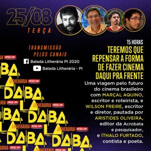 Uma viagem pelo futuro do cinema brasileiro com MARÇAL AQUINO, escritor e roteirista, e WILSON FREIRE, escritor e diretor, pautada por ARISTIDES OLIVEIRA, editor da Acrobata e pesquisador, e ITHALO FURTADO, contista e poeta
