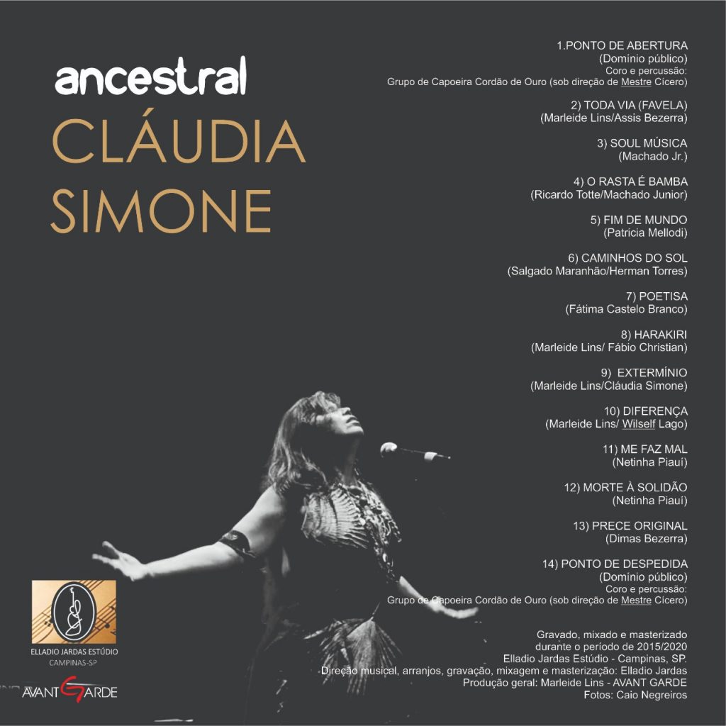 O álbum “Ancestral” de Cláudia Simone, gravado em Campinas, São Paulo, será lançado amanhã (27/08) na “Live Solidária” do Theatro 4 de Setembro, às 18h, e estará disponível a partir de amanhã, nas plataformas digitais. O álbum passeia pelos sons primevos dos tambores em interação com os grooves eletrônicos e a poesia.