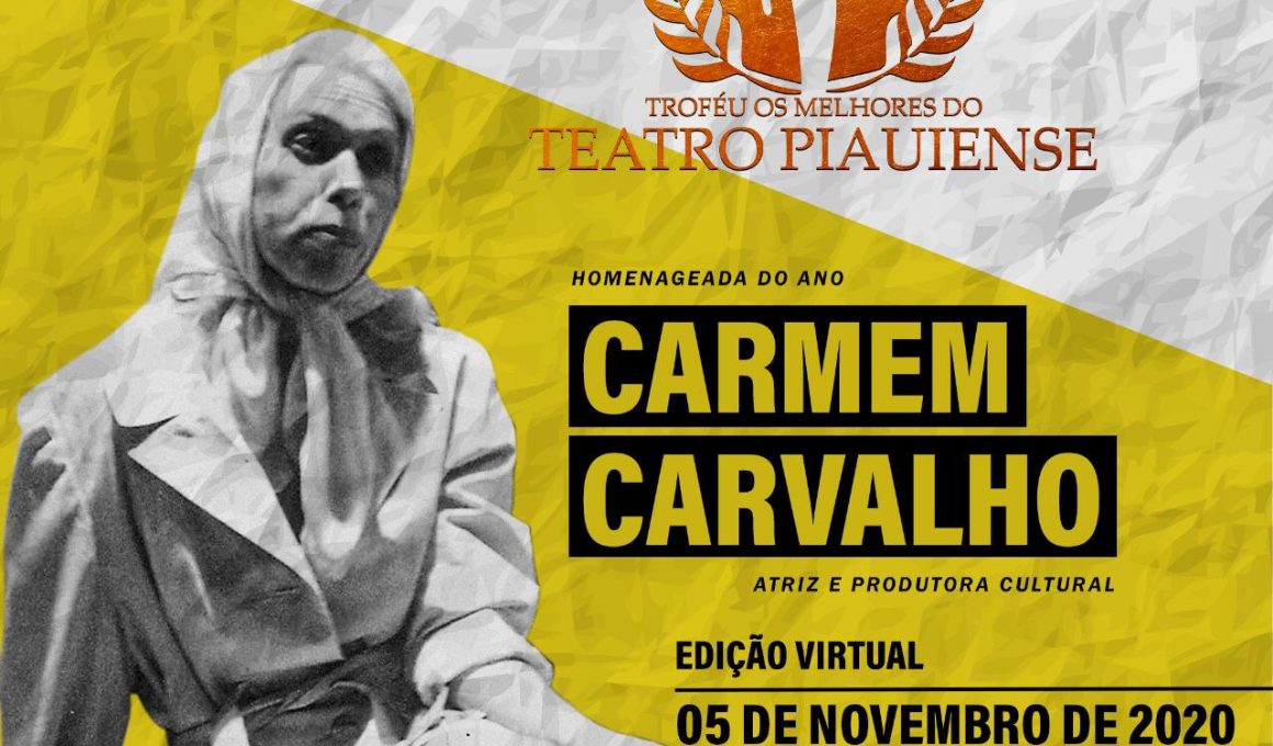 O Troféu Os Melhores do Ano do Teatro Piauiense chega a sua 9ª edição homenageando Carmem Carvalho. Atriz e produtora de teatro com mais de 30 anos dedicados exclusivamente ao teatro. Ela rompeu barreiras sendo a primeira a produzir teatro na cidade e se lançar na carreira em Portugal, onde até hoje tem estreitos laços. Há 8 anos trocou Teresina pra morar em Parnaíba empreitando um novo olhar sobre a sua arte. Carmem deixou um pouco as suas produções e se dedicando ao fazer teatral pela ótica de alunos de projetos culturais. Além de investir mais na sua carreira como atriz, oportunizando-se a ser dirigida por novos diretores.