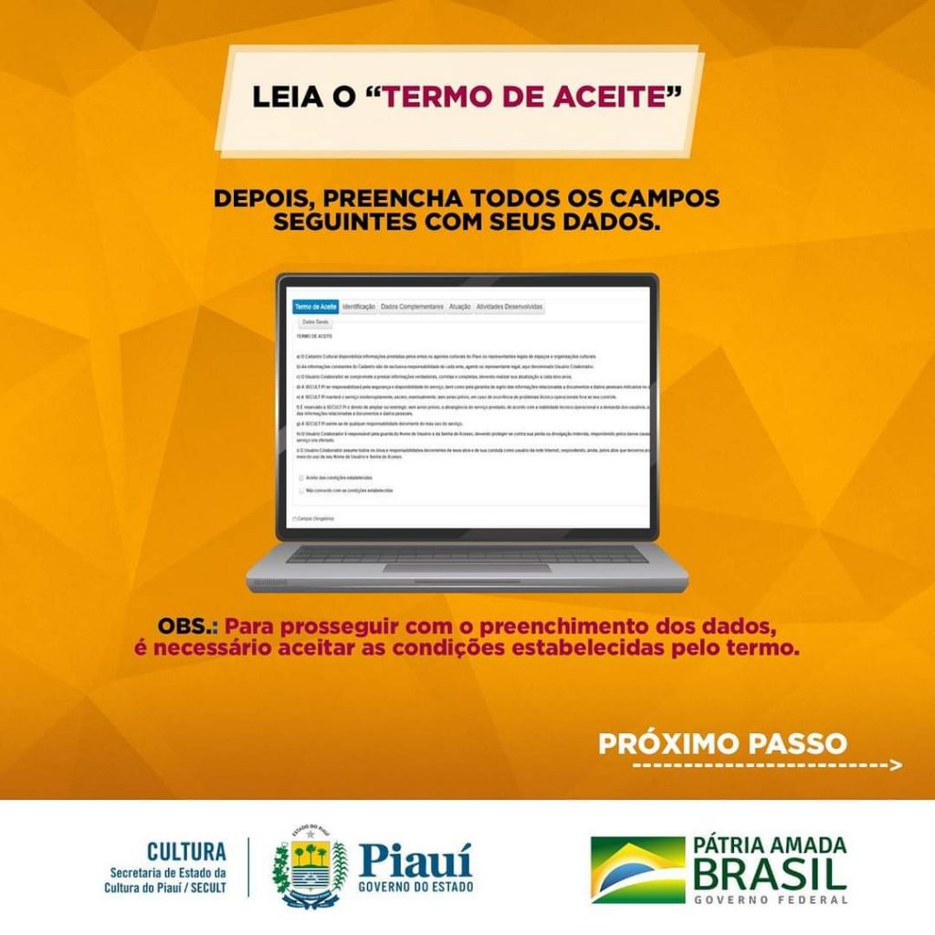 Para ter acesso ao auxílio emergencial o artista piauiense precisará fazer o cadastro no SICAC, veja as imagens a seguir para entender como funcionará: