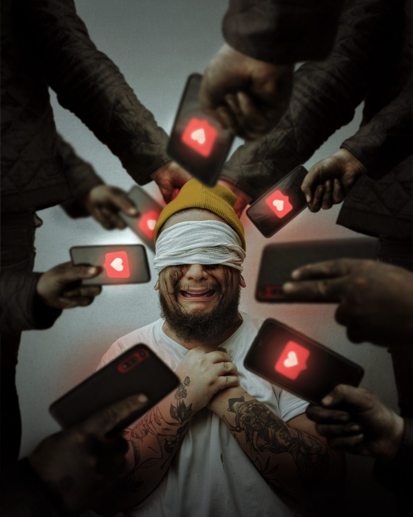 “Coleciono algumas histórias e tenho um apreço atípico em enxergar as pessoas do jeito que elas são de verdade. Sou dono de uma criatividade que se manifesta de um jeito troncho, mas que eu amo, isso me faz sentir criança de novo. Tatuado, com cara de mau, porém, todavia, entretanto o coração é de princesa”, brinca. Embora se divirta com as suas próprias criações, as fotografias do artista encantam o público e demonstram o seu cuidado com a representação e as memórias.