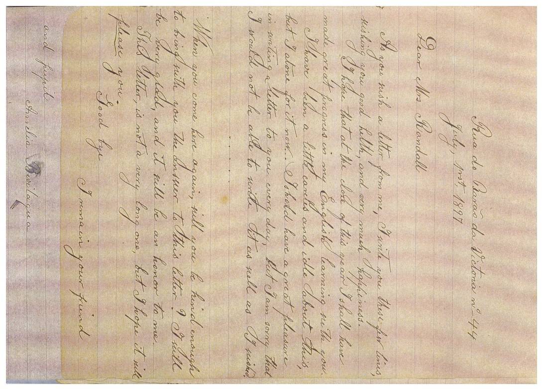 Carta escrita por Amélia de Freitas Beviláqua em atividade de aula