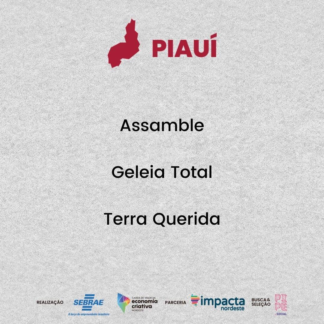 Os 3 projetos selecionados do Piauí foram a The Art Bordados (empresa que produz peças de roupas de casa bordadas em ponto cruz e que desenvolve um trabalho com a temática local), Assamble e a Geleia Total, sendo que a Assamble e Geleia Total conseguiram ser finalistas nas categorias Tecnologia e Mídia, respectivamente, e estão na disputa pelos prêmios de R$ 2.000,00.