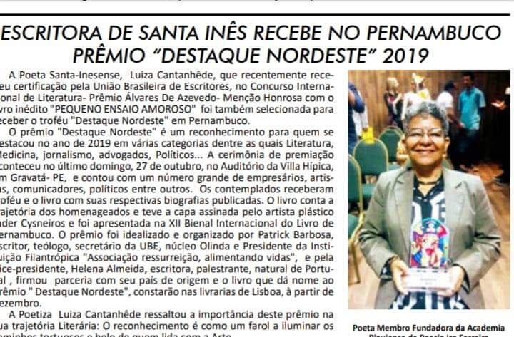 Luiza Cantanhêde é uma poeta maranhense, natural de Santa Inês e radicada em Teresina-PI. Ela chegou em Teresina em 1983, e na cidade se formou em Técnico em Contabilidade, iniciou a carreira Literária e criou a filha que hoje já é formada em arqueologia. A poeta e escritora já é reconhecida nacionalmente, sendo autora dos livros “Palafitas”(Penalux,2016), “Amanhã, serei uma flor insana”(Penalux,2018) e “Pequeno ensaio amoroso”(Penalux,2019). Além disso, participa de várias antologias nacionais e internacionais, entre elas: A Antologia internacional/bilíngue “Encruzilhada de versos” (Avant Garde edições-2014), “A mulher na Literatura Latino-Americana” (Avant Garde edições-2018), “Ero das eras” (Avant Garde edições-2019) e “Literatura de livre expressão” (Avant Garde/matizes-2019). Publicou nas revistas Mallamargens, Quatetê, Ser Mulher arte, Escrita Droide, Literatura & Fechadura, nos blogs “Como eu escrevo” e “O lume das palavras”. Luiza recebeu Menção honrosa no prêmio “Poeta H.Dobal” 2017, pela Academia Piauiense de Letras. Foi premiada no Concurso “Novos poetas Maranhenses” pela Associação maranhense de escritores independentes(AMEI) (2018 e 2019), além dos prêmios “Vicente de Carvalho” (2018) e “Álvares de Azevedo” (2019), pela União Brasileira de escritores-UBE/RJ. A autora é convidada constantemente para participar de feiras literárias, salão de livros e saraus, no Piauí e em outras cidades brasileiras.