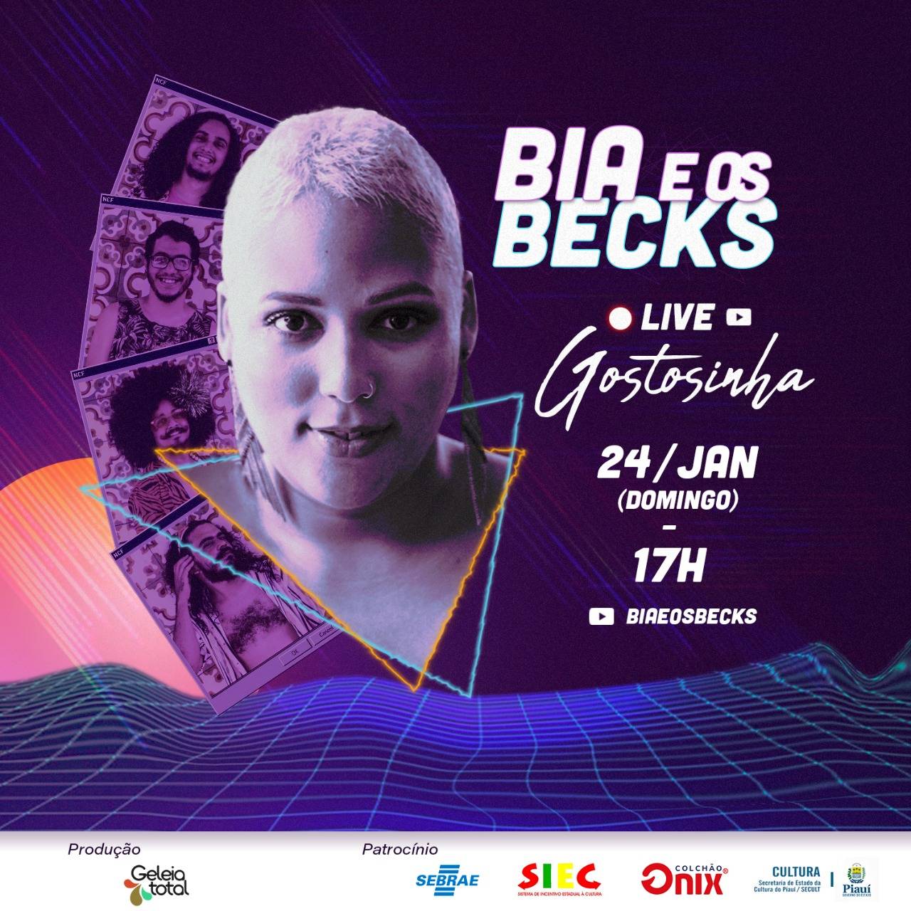 Na live, também serão exibidas prévias de dois clipes do novo álbum da banda, que foram viabilizados pelo patrocínio do edital de Economia Criativa do Sebrae Piauí. E também está sendo viabilizada pelo apoio dos Colchão Ônix através do Sistema Estadual de Incentivo à Cultura (SIEC). Domingo, dia 24, às 17h, vocês vão poder relembrar canções que embalaram os últimos dois anos da Bia e Os Becks e já conhecer um pouco do que a banda prepara para 2021.