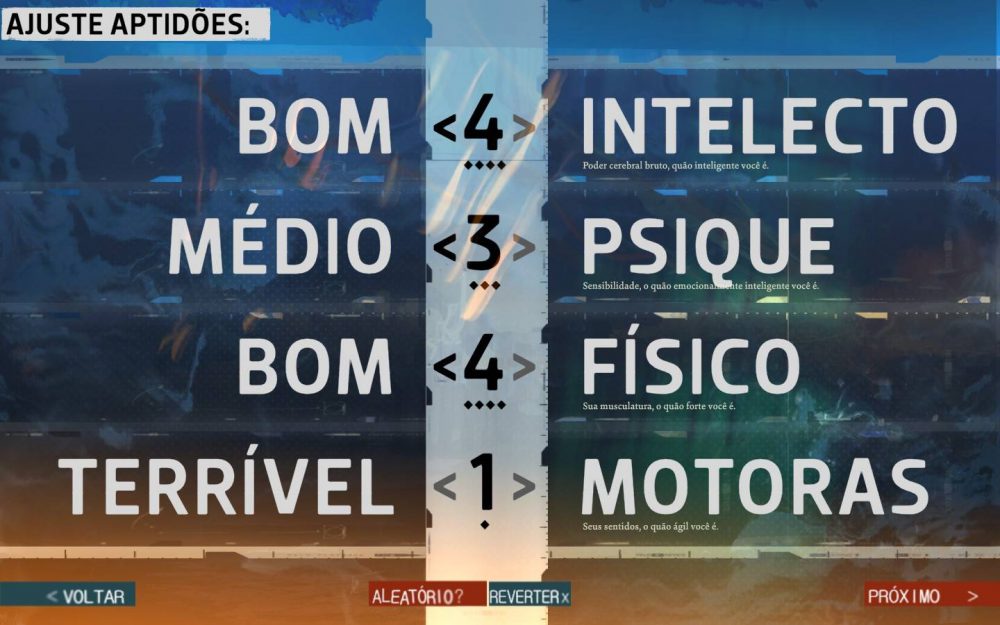 Os atributos que você escolhe influenciam no seu diálogo com os personagens e, por consequência, influenciam como a história anda, somado a isso, além do arquétipo inicial, durante todo o jogo você ainda tem acesso a sua Ficha de Personagem com mais 24 tipos de atributos ou pensamentos, para acrescentar ao seu personagem, atributos esses que variam entre Inteligência, Físico, Motora e Psicológica.