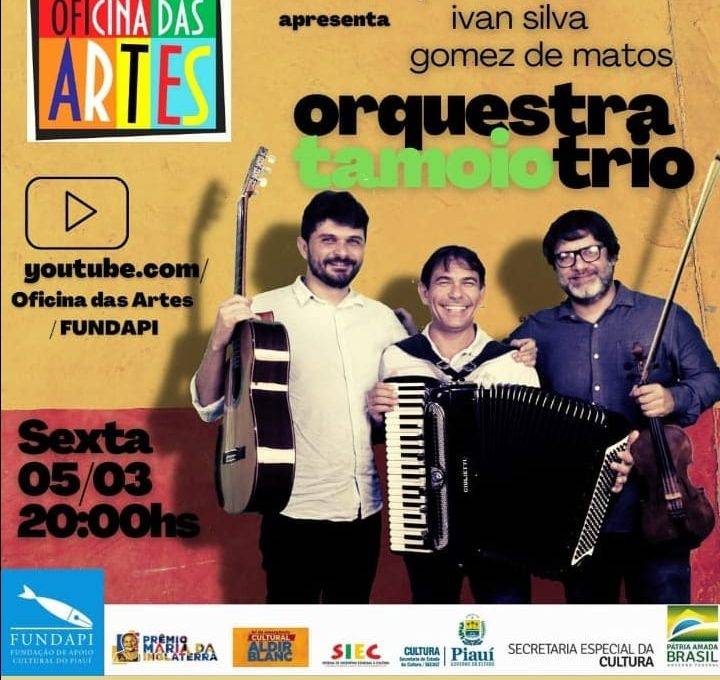 Amanhã (5) a partir das 20h a FUNDAPI- oficina das artes vai promover uma live com a participação do trio tamoio, com o premiado violonista e compositor Josué Costa , o maestro o saxofonista Ivan Silva e Gomez de Matos, com o melhor da música brasileira com grandes músicos piauienses. Será transmitida no canal do youtube.