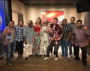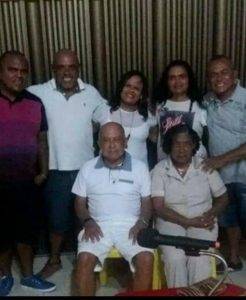Da direita para esquerda: Carlos Estevão (Sax), Índio (Trombone de pisto), Ronaldo (Trombone de vara), Egilson (Bombardio), Luís Carlos Soares (Sax-alto) e Atayde (Bombista). Luciano Santos à frente do grupo. Acervo pessoal de Luciano Santos.