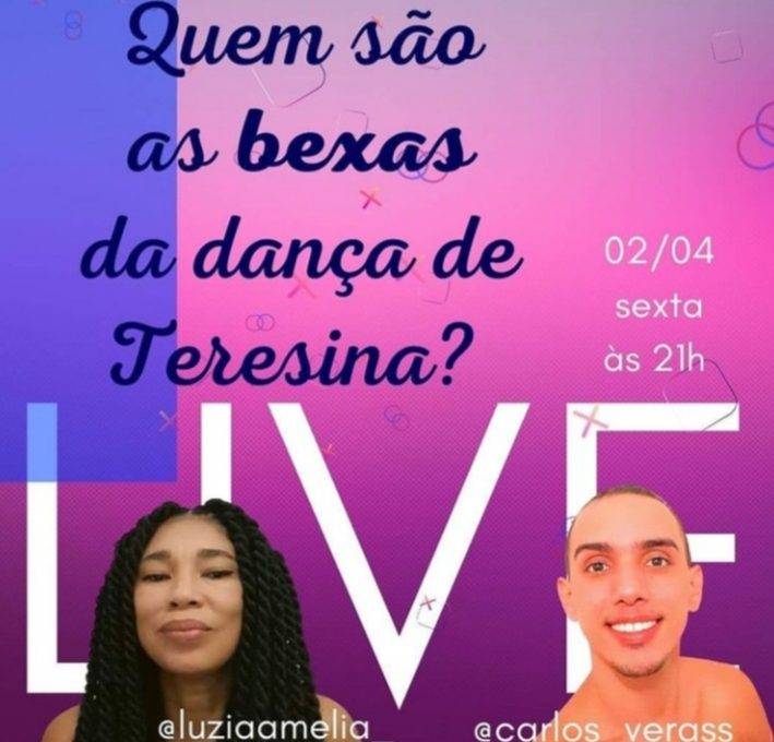 A artista, bailarina Luzia Amélia e o dançarino Carlos Veras realizarão amanhã a partir das 21h diretamente do Instagram da Luzia Amélia, uma live dedicada à nova geração de dançarinos de Teresina.
