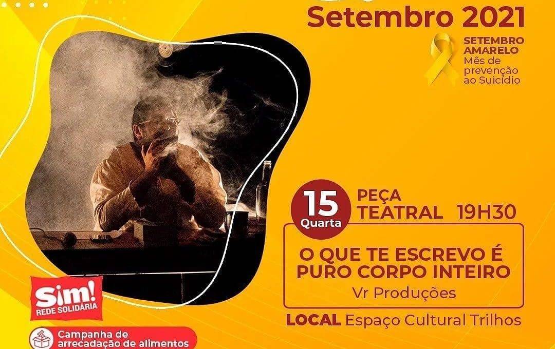 Hoje às 19h30 acontece mais uma apresentação do monólogo O QUE TE ESCREVO É PURO CORPO INTEIRO – texto de Nathan Sousa, direção de Wellington Júnior e atuação de Vitorino Rodrigues – no Espaço Cultural Trilhos. A apresentação será totalmente presencial, seguindo todos os protocolos sanitários, com um limite de público de 40 pessoas.