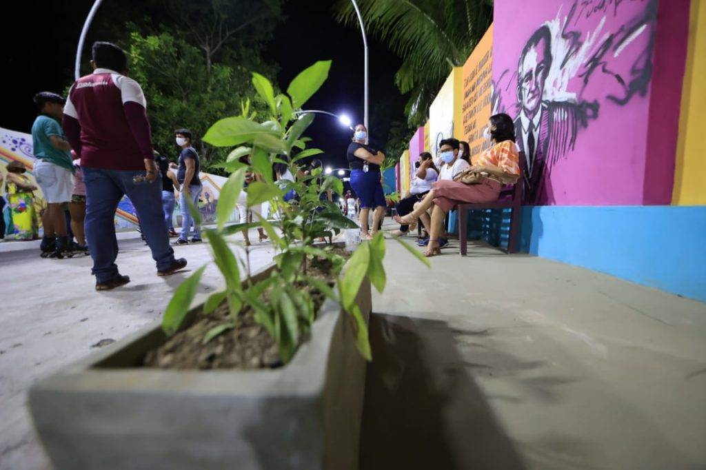 Tudo isso para transformar um local que estava subutilizado em um verdadeiro mural a céu aberto com pinturas que mostram a identidade da cidade, além de homenagear pessoas que ajudaram a construir a história de Luzilândia. Depois da reforma do espaço os artistas visuais realizaram uma intervenção com painéis de grafite no espaço, com diversas representações, como caricaturas e personas. Dentre estes artistas, esteve a professora de grafite e técnica da Cojuv, Maria Simone.