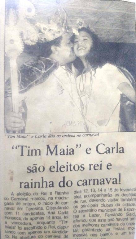 Aos quatorze anos de idade, Carla Fonseca foi eleita Rainha do Carnaval de Teresina.