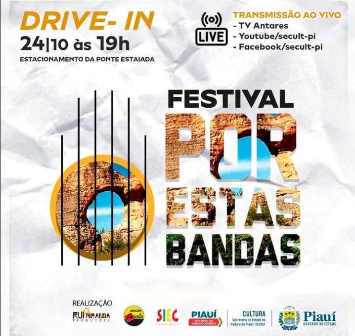 Dia 24 de outubro às 19h diretamente da ponte Estaiada, vai acontecer o Festival “Por Estas Bandas”, em comemoração ao dia do Piauí. A celebração contará com a Orquestra Tamoio, com a banda Validuaté e Ostiga Jr. Respeitando as medidas sanitárias, o evento contará com drive-in e para quem preferir o front stage, com vagas limitadas. A apresentação ficará por conta do músico e jornalista Henrique Douglas e a transmissão será pela Tv Antares, canal do youtube da Secult-PI e Facebook da Secult – PI. Realização DV Produção.