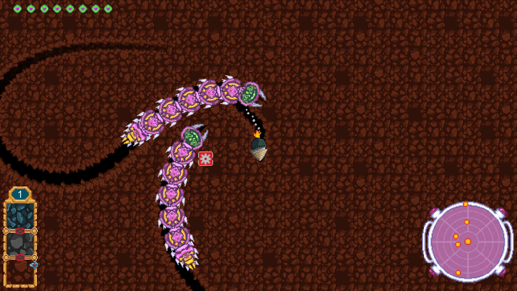 Super Drill Out é um game com uma trilha sonora contagiante e com ótimo trabalho de Pixel Art. A interface do usuário (UI) teve um cuidado especial, sendo bastante responsável por explicar bem as regras do jogo, na qual somos uma escavadeira que precisa fugir de serpentes de metal, tentando o máximo possível escapar da profundidade da Terra. Vale ressaltar também o trabalho que deve ter sido programar a inteligência artificial das serpentes, que são muito chatas. Muito.