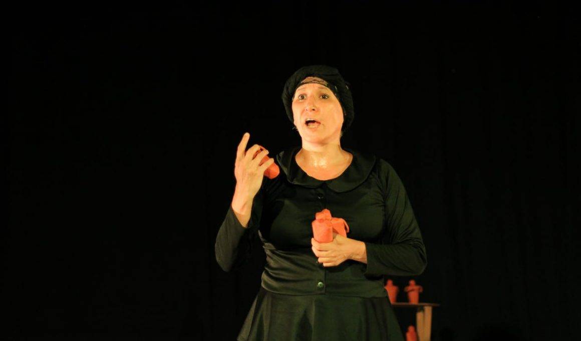 Alguém está em silencio, é uma forma diferente de também rezar; o silencio. Os minutos foram sendo gastos enquanto a plateia se organizava no espaço amontoados mediante aquele espaço cênico que comportava um corpo, era o corpo de uma mulher, velha? Talvez, viva? Não se sabe, mas aquele corpo rezava. Haviam também outros pequenos corpos, mas estes representados em esculturas de barro, que foram a tônica do cenário, madeira e barro. Essa mulher que a principio rezava, o fazia em frente à um oratório que curiosamente abrigava um pequeno jarro de flor, enquanto os santos e os anjos representados nas esculturas estavam livres daquele oratório, para ocupar o espaço e nosso o imaginário. Sim, aquele movimento de rezar, aquele oratório, aquela Fé, habitam lugares muito pessoais na gente, lugares de Avós, lugares de mães!