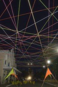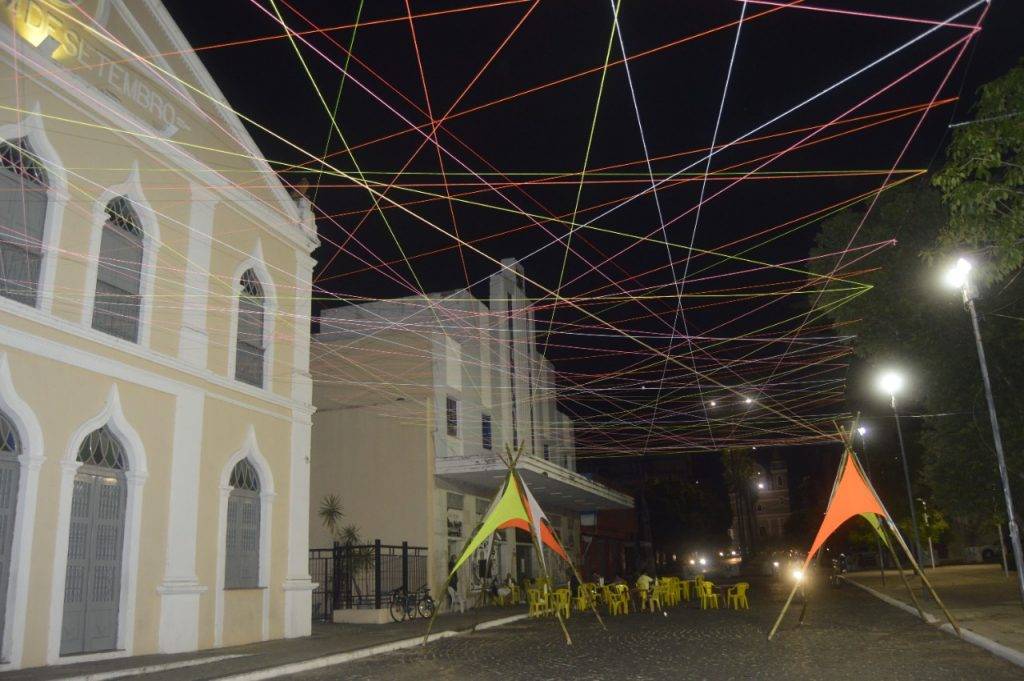 Semana passada (10/11) ocorreu a abertura do Circuito Urbano de Intervenções Artísticas – CUIA com a instalação artística “A Teia” em frente ao Theatro 4 de Setembro. A obra ficará disponível para visitação até 10 de dezembro. A programação do CUIA se estenderá até janeiro de 2022 e, em sua primeira edição, utiliza o centro da cidade como campo de experimentação artística. Utilizando diversas linguagens artísticas, o evento tem a finalidade de transformar e ressignificar do Centro de Teresina através de inovações estéticas, fazendo com que a população possa ter seu olhar ampliado sobre as possibilidades de uso do espaço urbano. Assim, a interação com espaços que já fazem parte do nosso cotidiano ganhará novos significados e/ou terão seus significados potencializados.