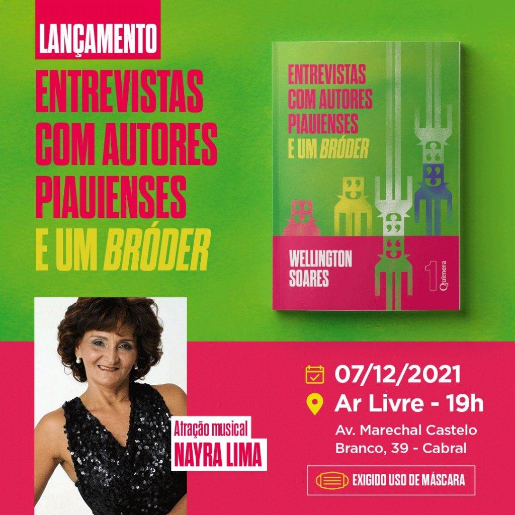 A estreia traz conversas instigantes com dez autores locais e um de fora, Celso Borges, poeta maranhense, daí a compreensão do título do livro: Entrevista com autores piauienses e um bróder. Os piauienses são Clara Melo, Nathan Sousa, Vanessa Trajano, Adriano Lobão Aragão, Marleide Lins, JL Rocha do Nascimento, Dani Marques, Demetrios Galvão, Sérgia A e o próprio Wellington Soares.